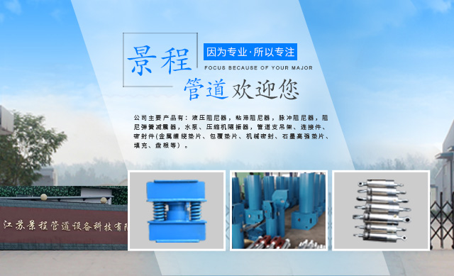 江苏景程管道设备科技有限公司是一家专业从事电力,石油化工,工业设备,桥梁建筑等行业中的管道及设备结构减振的设计、生产、检测和安装。公司座落于“长寿之乡”如皋市的西大门一江安镇,公司距宁通高速仅5公里,交通十分便利。
